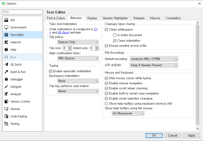 기본적인 인코딩은 UTF8로 하고 일시적으로만 수정할때 Windows-949/CP949로 하는것이 좋다.