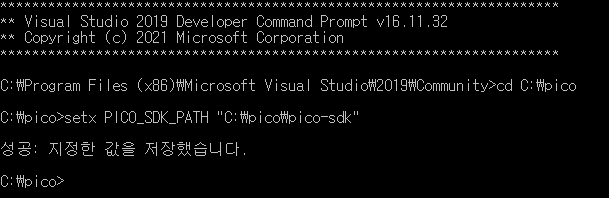 setx PICO_SDK_PATH "C:\pico\pico-sdk"