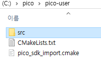 example에서 CMakeLists.txt와 pico_sdk_import.cmake 복사해서 붙여넣기